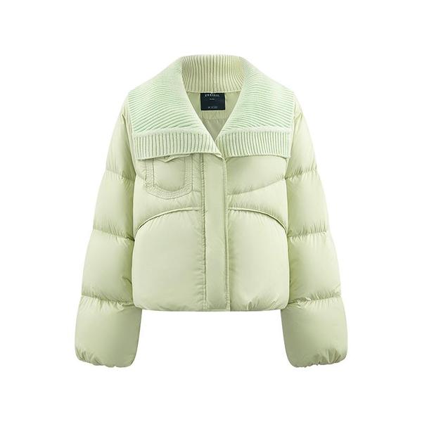 艾莱依短款羽绒服女冬季新款立领鸭绒可拆卸针织披肩休闲百搭外套